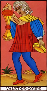 O Pajem de Copas indica uma fase construtiva no trabalho que sugere promessas e possibilidades futuras de realização. Não tenha pressa e nem espere demais em pouco tempo, saiba aguardar e mantenha seu espirito investidor para que tenha, futuramente, mais condições de avançar e melhorar o que desejar.